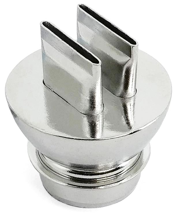 Наконечник (сопло) для термофена паяльных станций ASE-4313, ASE-4506, ASE-4212. Форма сопла - две параллельных щели, для пайки микросхем типа SOP. Расст. между соплами 8,7 мм (0,34"); ширина каждого сопла 19 мм (0,75"). Материал: бескислородная медь с никель-хромовым покрытием. Рабочая температура <500°С. Назад в раздел |