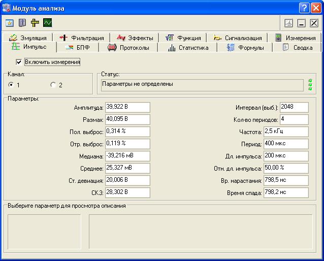Статистические измеренияДля большего числа определяемых программой параметров имеется возможность проведения статистической обработки этой величины по времени (до трех одновременно обрабатываемых параметров). При каждом новом измерении новое значение выбранного параметра вносит соответствующие поправки в вычисляемые статистические величины.